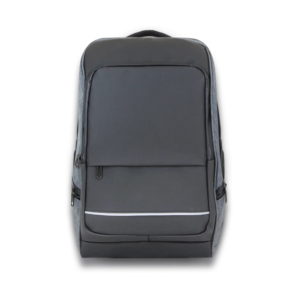 The Compact backpack combines elegant simplicity with functional design. Ideal for professionals, students, or daily commuters, it offers a structured silhouette with refined matte finishes and smooth, rounded corners. The front flap conceals a large zippered compartment, while additional side and interior pockets provide practical organization. The padded back panel and straps ensure comfort, while thoughtful touches like reinforced stitching and custom zipper pulls give it a premium feel. A subtle reflective accent on the front adds safety without disrupting the clean aesthetic, perfect for users who want sleek style and smart utility in one bag.