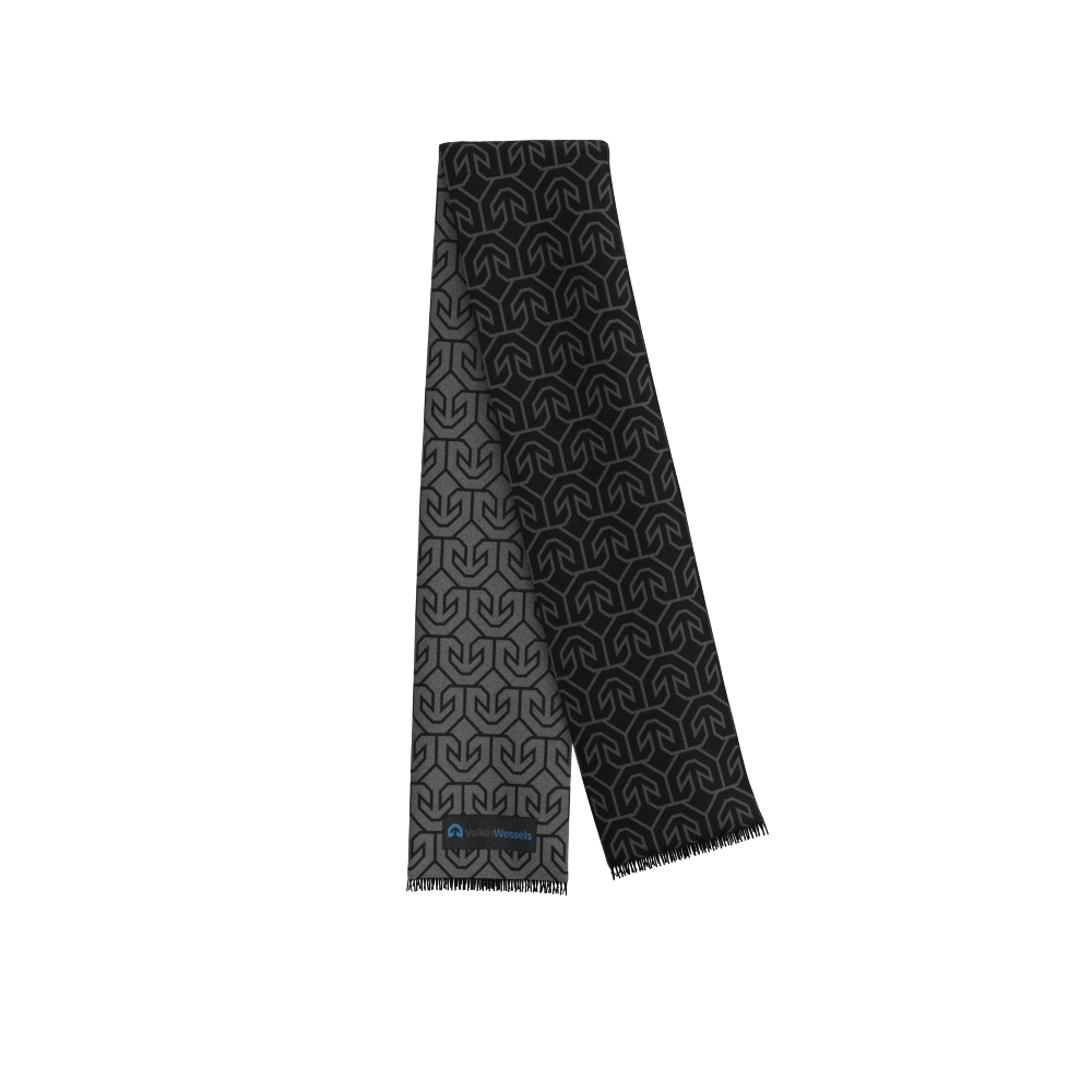 This 180 × 30 cm woven scarf is made from a soft blend of 80% viscose and 20% polyester. Included in the price: a fully custom design in up to 3 colors, plus fringes in up to 2 colors for a personalized finish.