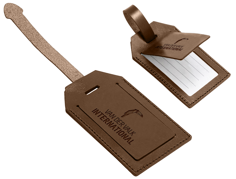 Crafted from quality leather in a range of colors, this luggage tag includes blind printing on one side and a paper ID label. A stylish and functional accessory for travel branding. Extra print on the second side available at a surcharge.