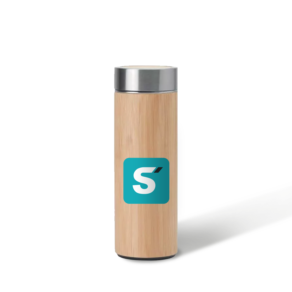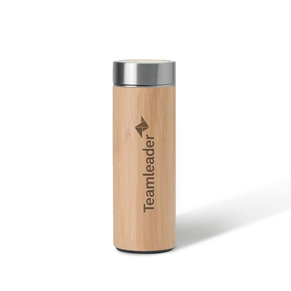 This bamboo tea bottle combines natural style with everyday function. Made with a durable stainless steel interior and a bamboo exterior, it offers a clean, eco-friendly look. The 400 ml capacity is ideal for tea or other beverages on the go. Customize it with either laser engraving or a printed logo to create a refined, branded gift or promotional item. Perfect for wellness campaigns, office use, or sustainable merchandising.